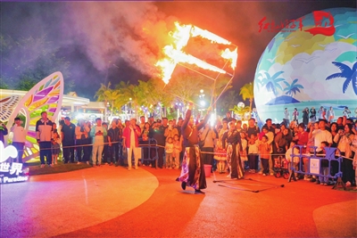 三亚红色娘子军演艺公园景区推出为期两个月的丝路鎏光季新春主题活动,流光溢彩的灯展、非遗烈火秀表演以及动物大巡游等,让游客沉浸于非遗文化的独特魅力中。