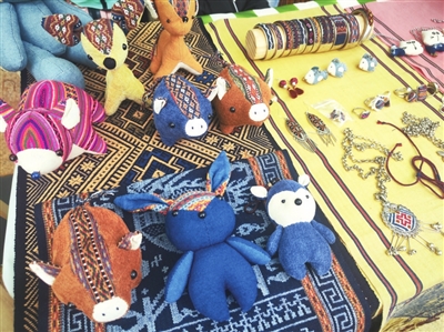 非遗市集上的黎锦工艺品。记者 鲁启兰 摄