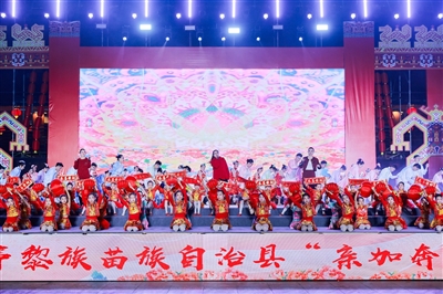 在“村晚”舞台上,像梁瑜一样的老百姓是绝对的主角。当晚,他们或亮嗓高歌,用嘹亮婉转的嗓音唱出丰收年景的喜悦;或婀娜旋转,用灵动曼妙的身姿舞出对美好生活的向往;抑或是身着色泽鲜艳、纹路雅致的黎锦服饰走秀,将气氛推向高潮……好戏精彩不断,一个个“民星”自编自导自演的接地气、入人心的节目,将浓浓的年味“拉满”。现场人头攒动,掌声、欢呼声、喝彩声此起彼伏,热闹非凡。