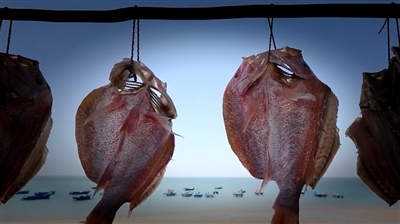 一方水土承载一方味道。 被运送上岸的红鱼,从背后切开、摊开,去鳞净肚处理后,按着肉的纹理竖着划刀,再用海盐腌制,之后清洗鱼肉并挂在阳光下自然晾干。在海风和阳光的关照下,红鱼渐渐变得透亮干爽,闻之有香味,吃之香甜,余味无穷,成为儋州的独特美味。