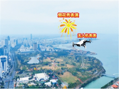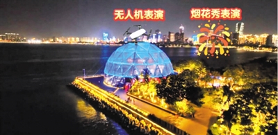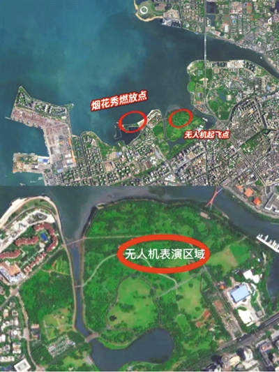 无人机编队的正面面向滨海大道。在万绿园中央区域或滨海大道沿线,可以获得绝佳的无人机观赏体验。
