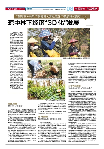 看琼中,林下面积占县国土面积的80%,拥有发展林下经济的绝对优势。近年来,琼中已经培育了“林+药”“林+菌”“林+果”“林+旅游”等林下发展“1+N”模式。截至2024年底,琼中林下经济总量面积达23.53万亩,保有量位居全省各市县首位。林下经济开启生态与经济双赢的新模式,助力琼中农业开辟“3D化”发展。