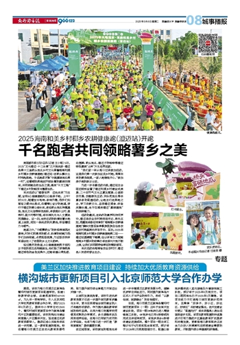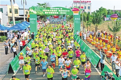 南国都市报5月5日讯(记者 王小畅) 5日,2025“文化澄迈·十二乐章”之大地流彩·澄迈县第十三届桥头地瓜乡村文化季暨海南和美乡村椰乡农耕健康跑(澄迈站)在桥头镇沙土村鸣枪起跑。千名跑者齐聚“中国富硒地瓜第一村”,迎着朝阳奔跑在阡陌纵横的富硒田园间,共同领略自然生态之美,感受“千万工程”下澄迈乡村的蜕变与蓬勃生机。本次活动以“澄接世界 迈向未来”为主题,设有8公里健康跑和2公里亲子跑。上午7时30分,随着发令枪响、彩烟升腾,选手们如离弦之箭冲出起点,沿着精心设计的跑道,穿行于澄迈的青山绿水间,途经桥头地瓜种植基地、地瓜文化馆等特色地标,串联起沙土村、昌表村、昌大村等村落,将田园风光与人文景观完美融合。这一刻,全民运动的热情在薯乡跑道上绽放,宛如一条流动的风景线,洋溢着活力与朝气。