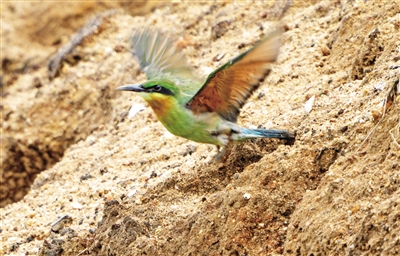 在澄迈湾的一处斜坡沙土坑,最多时能看到六十多只栗喉蜂虎。