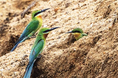 近年来,随着海南生态环境的持续改善,越来越多像栗喉蜂虎这样的珍稀鸟类选择在澄迈湾栖息繁衍。澄迈湾这片土地,为它们提供了温暖的家园,而它们也为这片海湾增添了灵动的生机与活力。