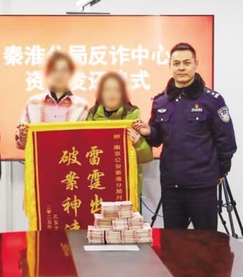 南京警方将截获的涉诈资金返还留学生家属。(南京市公安局供图)