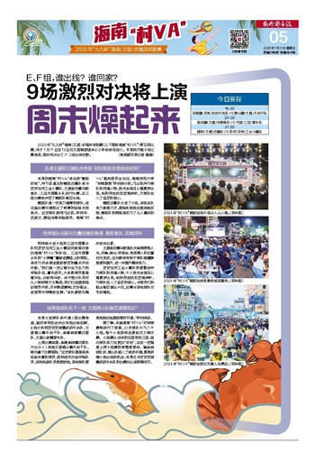 2025年“九九杯”海南(文昌)乡镇排球联赛(以下简称海南“村VA”)第五周比赛,将于7月11日至13日在文昌铺前镇中心小学排球场进行。本周将开展9场比赛角逐,届时将决出E、F二组出线名额。(南国都市报记者 潘頔)东道主铺前古镇队的考验:轻松取胜还是绝地反转?
