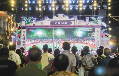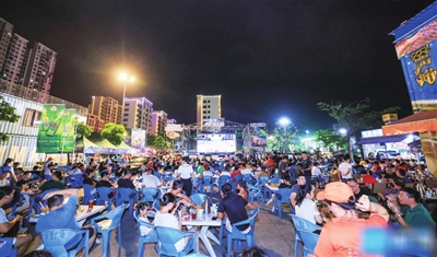 2024年“村VA”铺前站球迷喝老爸茶看球。(资料图)