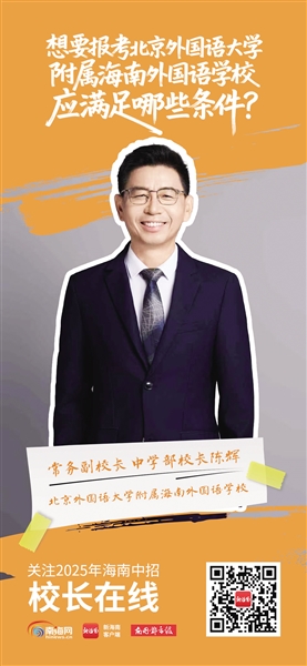 《校长在线》当前,2025年海南中招志愿填报工作正在进行中。为助力广大中考生精准填报中招志愿,7月11日,新海南客户端、南海网、南国都市报邀请北京外国语大学附属海南外国语学校常务副校长、中学部校长陈辉做客《校长在线》,解读中招政策,并解答家长疑惑。