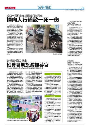 南国都市报7月14日讯(记者 王燕珍)7月14日下午,一辆轿车在海口市琼山区中山南路倒车时撞到人行道上2名行人,导致一死一伤。经海口公安交警初步调查,肇事车司机因操作不当误将油门当成刹车引发此事故。记者从海口公安交警了解到,2025年7月14日13 时许,一辆小型轿车在海口市琼山区中山南路倒车时,因驾驶人操作不当,误将油门当成刹车,冲撞到正在附近人行道上的两名行人,同时撞倒停在该处的二轮电动自行车,造成一人送医抢救无效死亡,一人受伤的道路交通事故。经吹气检测,排除当事人饮酒后驾驶。目前,事故正由海口公安交警琼山大队处置中。