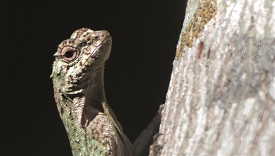 斑飞蜥在树上觅食。