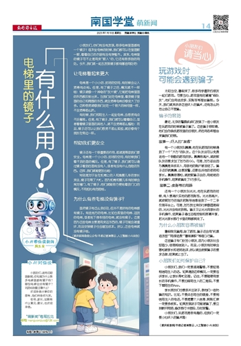 镜子还有一个很重要的作用,那就是帮助我们更安全。电梯是一个小小的、封闭的空间,有时候我们看不到后面的情况。但是,有了镜子,我们就可以通过镜子看到后面有没有人,或者有没有什么危险的东西。这样,我们就能更放心啦!