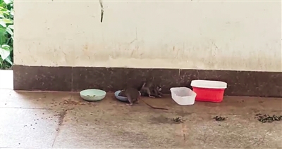 “这只是其中一处!还有的投喂点设在楼栋靠近绿化带的走廊里,好几处呢,这平常有猫来吃,可是我们发现会招来很多老鼠。”小区业主胡先生告诉记者,并出示一段业主拍摄的视频,记者看到该视频上一处投喂点有多个投喂食物的盒子和小碗,装有一些猫粮,现场却是来了不下5只“膘肥体壮”的老鼠在“狼吞虎咽”,即便有业主靠近拍摄视频,这些大只的老鼠似乎也不怎么畏惧。