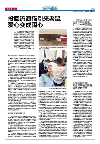 动物保护专家李波表示,市民出于爱心投喂流浪猫、狗的行为本身是好的,是善意之举,但是应该合理投喂,比如尽量在白天投喂,少喂一些,这样不会导致有太多的剩食,而老鼠是夜行性动物,一般晚上才出来觅食,这样能比较有效地治理鼠害。