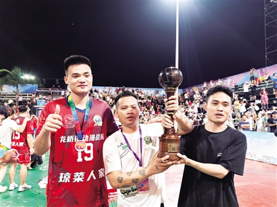 南国都市报8月11日讯(记者 韩星)还记得开赛那天儋州三都古郡队教练立下的誓言吗:我们要把冠军奖杯拿回三都办事处放!8月10日晚,海南“村VA”冠军争夺战落幕,儋州三都古郡队队员羊全远作为海口龙桥镇动漫战队的增补队员,助力球队夺得冠军!颁奖过后,羊全远向龙桥队员借来奖杯,和前来加油助威的儋州三都古郡队领队羊美彬、教练黄裕才一起,捧起九九问天杯合影留念,许下明年再来参赛的约定。回顾今年的海南“村VA”,首次参赛的儋州三都古郡队从开赛以来就备受球迷关注。6月15日,海南“村VA”在文昌龙楼镇铜鼓岭排球场开幕。揭幕战由文昌东郊镇火箭队对阵儋州三都古郡队。