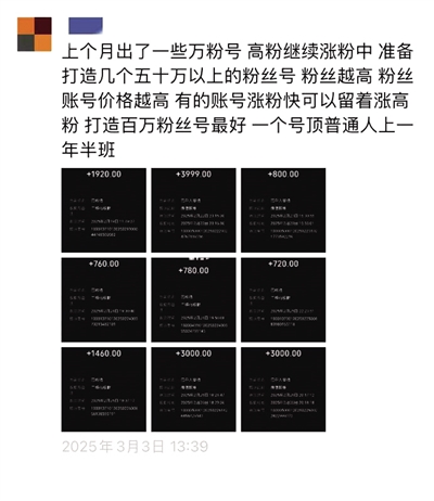 该商家说,这些账号销售十分火爆,买家经常催着加急起号,有个合作商“一周就要几十个万粉号”。在其提供的交易截图中,9个账号的成交价从700元至4000元不等,而百万粉丝的号要十几万元。
