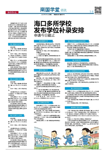 如学生错过了7月21-28日的新生网报,可以在8月11日-12日在海易办上进行补登记,申请民办学校(海口南海实验学校)的学位。