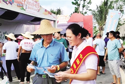 海南中行员工在中国农民丰收节活动现场宣讲特色涉农产品。
