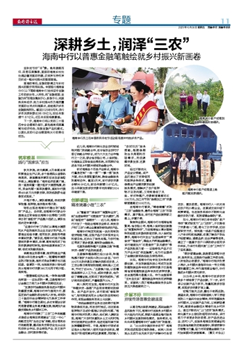 从高位规划到机制建设,再到金融产品和服务下沉,海南中行在服务乡村振兴中大胆先行先试,探索大型商业银行服务乡村振兴发展的特色模式。服务背后,也处处体现着海南中行“金融为民”的温度。