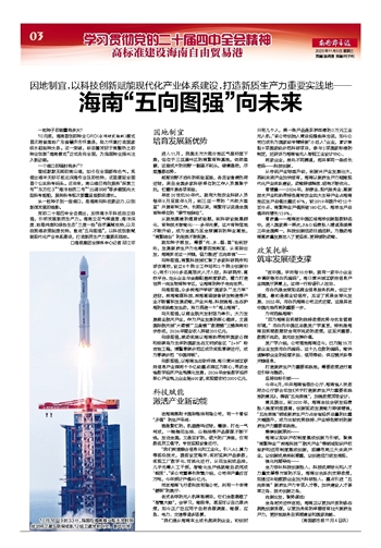 今年4月,中共海南省委办公厅、海南省人民政府办公厅联合印发《关于打造新质生产力重要实践地的意见》,围绕“五向图强”,加强政策顶层设计。