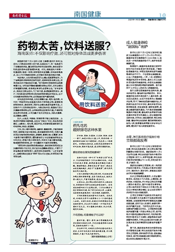 “使用饮料送服药物的隐患很多,降低药效的同时还会加重药物的不良反应,我们在此也提醒患者朋友,不要为了图省事或者怕药物苦口,就用饮料送服药物。”上述专家表示,正确的做法还是该“乖乖”用白开水送服,科学用药才能有助治病。