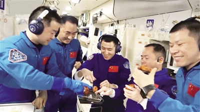 记者从空间站下行的视频资料看到,航天员从包装袋里取出腌制好的鸡翅,在签架上进行固定后放入热风烘烤机内,加热28分钟,一盘滋滋冒油的宇宙级奥尔良烤鸡翅就制作出来了。神二十航天员王杰和神二十一航天员武飞两个内蒙古人,还联手烤制了一盘热气腾腾的黑椒牛排,让神二十乘组指令长陈冬一饱口福。
