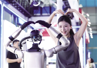 9月6日,在2025全球工业互联网大会展览区,嘉宾和智能机器人互动