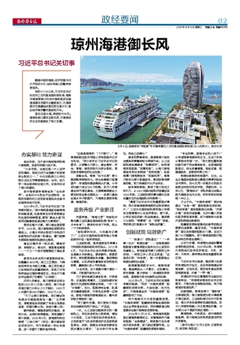 放眼全岛,海南“四方五港”港口集群格局持续优化,综合保障能力显著提升:洋浦国际集装箱码头扩建,今年吞吐能力将达500万标箱;东方八所港建设油气储运基地;文昌清澜港建设火箭发射场设备运载码头……各港口基础设施水平不断提升,为海南发展筑牢根基、畅通动脉。