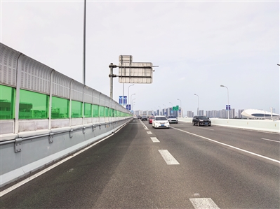 与此同时,海秀快速路建成以来首次开展的大面积声屏障整体更换作业,声屏障防腐更换及升级工程正有序推进。该工程于今年10月启动,现已进入收尾阶段,核心目标是保障通行安全、恢复隔声功能并提升道路美观度。