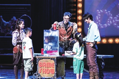百老汇互动亲子科学剧《物理秀》中文版现场。(来源海口湾演艺中心微信公众号)