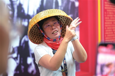 在纪念馆里,女民兵讲解员还生动地讲述着自己从小被女民兵精神耳濡目染的成长经历,以及“母女同炮、婆媳同炮、三代同炮”的事迹,蒙曼仔细聆听着。“在她们坚定的目光中,感悟到了英勇女性光辉。”望着纪念馆里女民兵们的旧照片,蒙曼如是说。