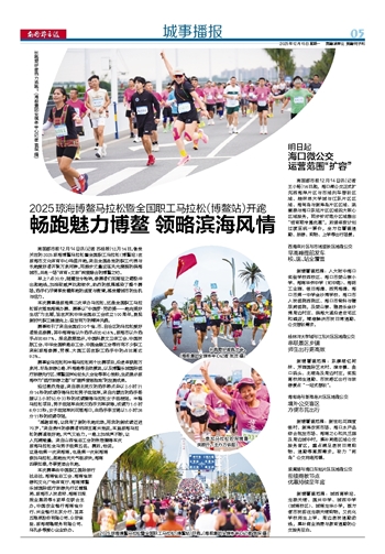 南国都市报12月14日讯(记者 苏桂除)12月14日,备受关注的2025琼海博鳌马拉松暨全国职工马拉松(博鳌站)在琼海市文化体育中心鸣笛开跑,来自全国各地的职工代表与长跑爱好者齐聚万泉河畔,用脚步丈量这座风光旖旎的滨海城市,共赴一场“体育+文旅”深度融合的博鳌之约。早上7点30分,随着发令枪响,参赛者们如离弦之箭般冲出起跑线,加油助威声此起彼伏,热烈的氛围感染了整个赛场,选手们尽情享受着奔跑的速度与激情,感受着城市的生机与活力。