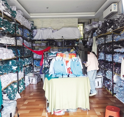 海口部分校园周边商贩售卖“山寨校服”。