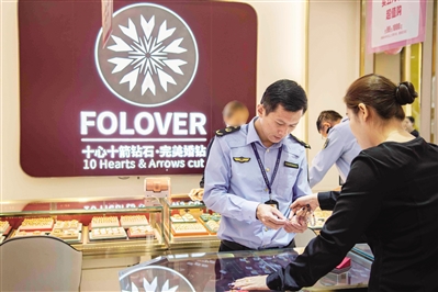 海口市市场监管部门巡查金店。(记者 蒙健摄)