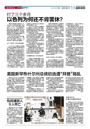 巴勒斯坦圣城大学教授奥萨马·沙阿斯认为,内塔尼亚胡政府为了给政府内极右翼人士交代,不会同意加沙地带完全停火。但随着美国进入大选年,加沙战事持续带来的外溢效应已经影响了美国在中东的利益,且加沙地带死亡人数仍在快速上升也让拜登政府背负巨大的“人道压力”。