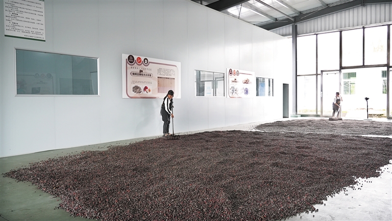 2023年5月,南熙咖啡加工厂正式投产,每年可加工成品咖啡豆100吨,产值可达2000万元,加工厂可根据市场需求加工罗布斯塔、阿拉比卡等不同品种及风味的咖啡豆产品。
