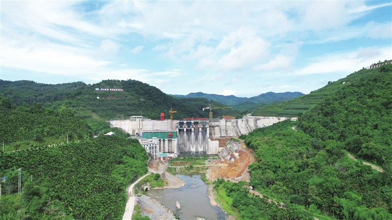迈湾水利枢纽工程是“十四五”期间国家重点推进的150项重大水利工程之一,是海南省北部规划的大型水资源配置工程,也是保障海南南渡江下游海口市、澄迈县、定安县、屯昌县、临高县供水和生态用水安全的控制性水源工程。该工程总投资73.64亿元,总工期56个月,于2020年开工。工程为碾压混凝土重力坝,总长376.5m,最大坝高78.5m,由挡水坝段、溢流坝段、进水口坝段、坝后式发电厂房、过鱼设施及右岸灌区渠首等组成。据介绍,该工程具有土质边坡高、主体跨度长、坝体高度高等特点,且海南雨季较多,施工面临诸多难点,他们编制了10种作业指导书和22份施工方案,统一施工标准,高标准实现主体大坝全线封顶。