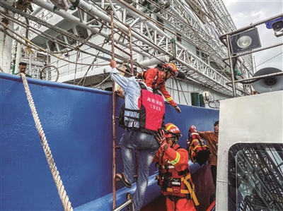 到达目标渔船后,消防救援人员与区政府相关工作人员登船逐一向在场船员进行耐心疏导。最终,在消防救援人员的悉心引导下,船上13名船员有序乘坐崖州1号消防船上岸避风。(记者 张宏波 通讯员 莫文彬)