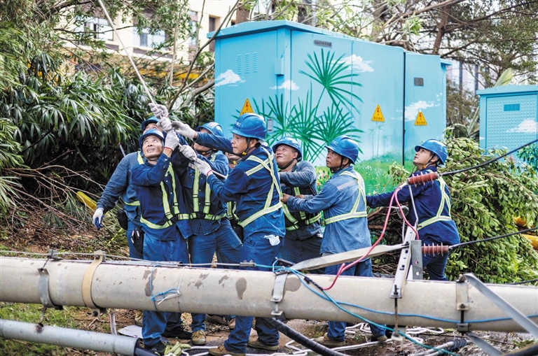 在“摩羯”的影响下,海南全省共有168.1万户居民用电受到影响。在受灾最为严重的文昌,“摩羯”刚过,援琼电网人便开始了与时间的“赛跑”。