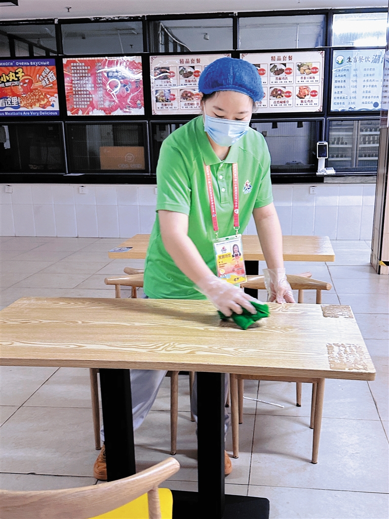 “秘诀就是要早、要勤、要细。”陈红解释,“早”就是要提前准备,在开餐前一个小时到达现场,测量体温,带好用餐帽口罩手套,摆好餐盘、筷子勺子,迎接大家的到来。