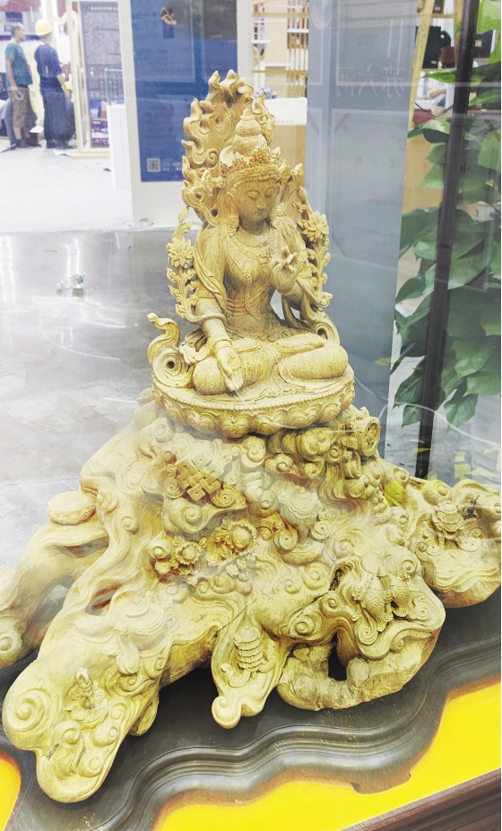 该展区负责人介绍:“这是10余年前,由一整块海南本地沉香木料雕刻而成的,雕工精美,具有极高的收藏价值。在这次大会展出,主要是进行展示。”