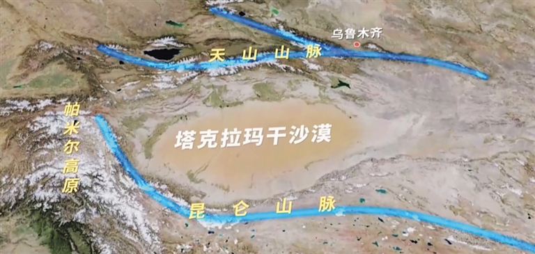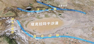 塔克拉玛干沙漠是全国沙漠中的“老大”,它位于新疆的塔里木盆地。为了不让沙漠里的沙子到处跑,人们想出了一个好办法,那就是在沙漠周围种上很多树和植物,形成一个绿色的“围脖”,把沙漠围起来。这个“围脖”有3046公里长,可以绕沙漠一圈。