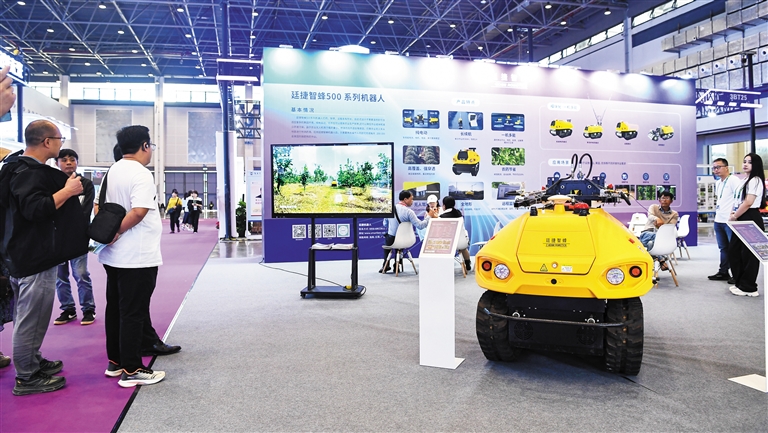 记者还在看到了相控阵天气雷达、水下潜行机器人、农业巡检机器人、农业调查无人机、智能巡查机器狗等智能装备、设备,它们为农业现代化插上了科技的“翅膀”。