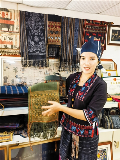 自此,一件件黎锦产品从她手中滑过,再辗转各地。