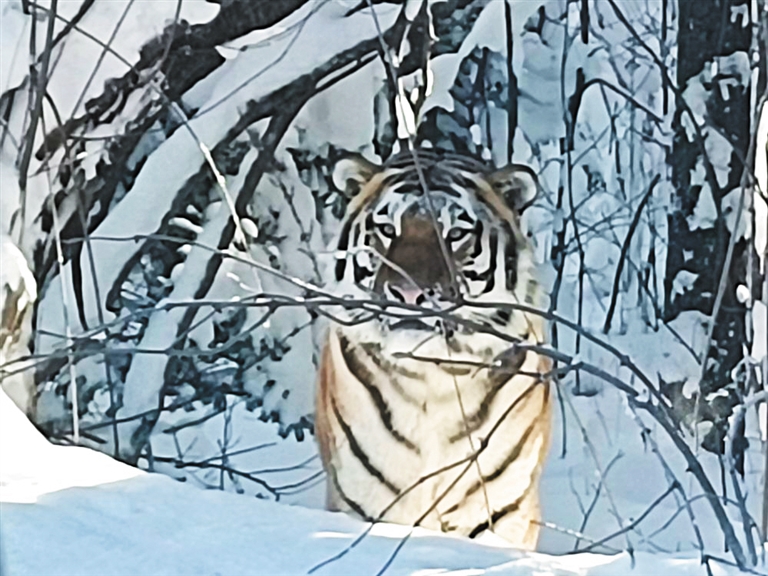 就在12月3日,保护人员在长白山西坡的锦江大峡谷附近,看到了一只真正的野生东北虎,还拍了好多清楚的照片。7天前,他们还在离这里300米的地方发现了老虎的脚印。为了保护大家的安全,他们很快就做好了准备。他们告诉所有人,这里有大老虎出没,要小心。还在发现老虎的地方竖起了警示牌。