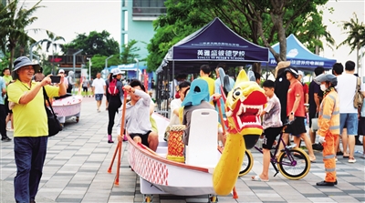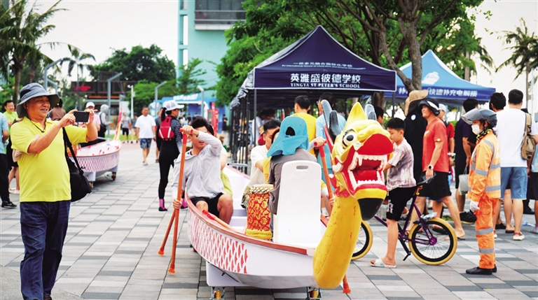 在龙舟赛开赛期间,龙舟文化体验周也将持续开展。大家可以在欣赏龙舟赛的同时,打卡龙舟文化体验周。游玩旱地龙舟、水上运动项目、逛龙舟市集、品特色美食、购非遗文创品,在舌尖与指尖间,“粽”情享受美好时光。