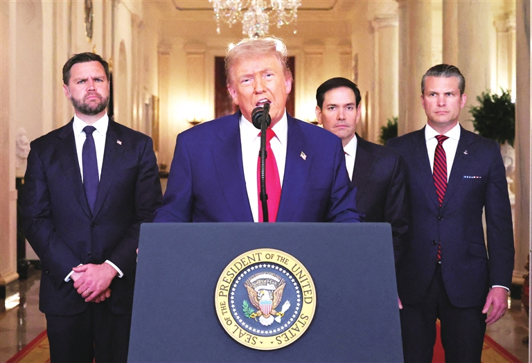 据新华社北京6月22日电 美国总统特朗普21日晚确认,美军空袭伊朗三处核设施。地区问题专家认为,美国动用军事力量在以色列和伊朗冲突中直接“下场”,推升冲突进一步升级并加剧外溢风险,把相关国家和中东地区推向灾难深渊边缘,其连锁反应或将蔓延全球。