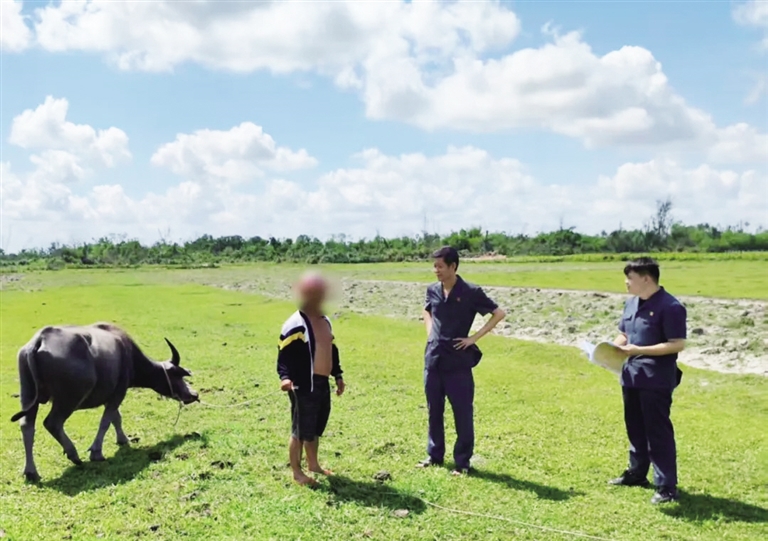 “这头牛犊是我家的,它的花斑跟我家母牛左腹的纹路一模一样。”去年的一天午后,文昌市锦山镇农户韩雄(化名)攥着被汗水浸透的草帽,追至邻村符永旺(化名)的牛群时,田埂上正扬起滚烫的热风。作为习惯了“敞放散养”的养殖户,韩雄常年将牛驱赶到村庄周边的草地觅食,从未想过没打耳标的牛犊会成为矛盾导火索。