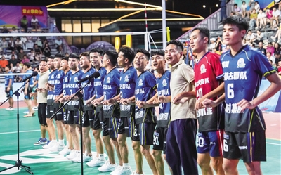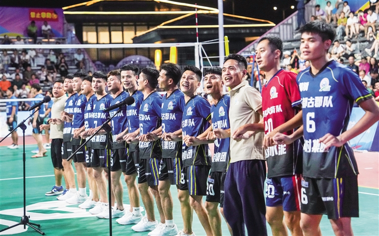 南国都市报6月22日讯(记者 韩星)6月22日晚,海南“村VA”迎来儋州三都古郡队和琼中湾岭镇奔格内队的比拼。比赛前,三都古郡队在球场唱响儋州调声,文昌东郊镇火箭队队员黄兹松惊喜现身,前来一起助阵。从互不相识到成为朋友,海南“村VA”赛场见证了球队之间队员的友谊。