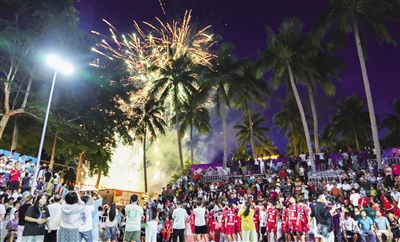 夜幕还未完全降临,重兴站赛场内便已座无虚席,球迷们满怀期待,早早占据有利观赛位置,只为一睹精彩赛事。而赛场外,仍有大批市民游客源源不断地从入口涌来,他们热情高涨,即使没有座位,他们站在场边也要看,只为近距离感受海南“村VA”的激情与活力。场内场外,到处都是欢呼呐喊声,排球运动的魅力在此刻尽情释放。